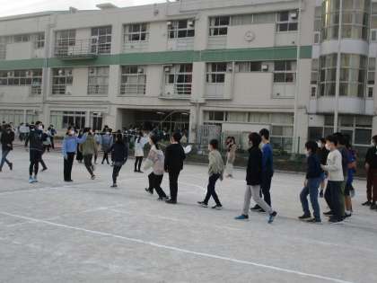 写真は6年生のなわとび練習です。今日は大繩です。