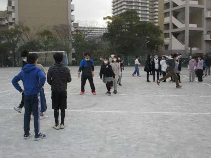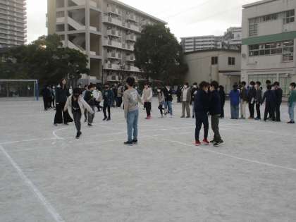 写真は6年生のなわとび練習です。今日は大繩です。