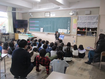 今日は読み聞かせボランティアの2年生保護者の皆さんによる読み聞かせがありました。