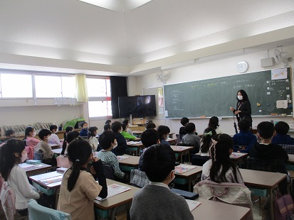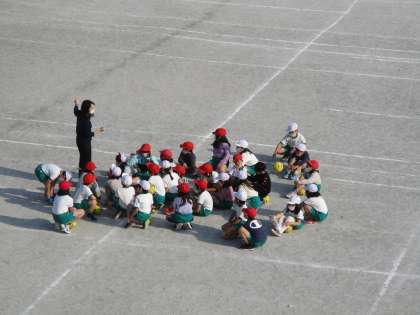 外体育2クラス。今日もそんなに寒くありません。写真下は、これから始まる学習活動の事前の注意を受けています。