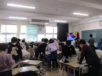 5年生の2クラスの様子です。1クラスは教室で理科の実験中でした。