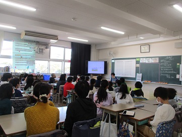 今日は5年生が曲あてクイズ集会に参加しています。