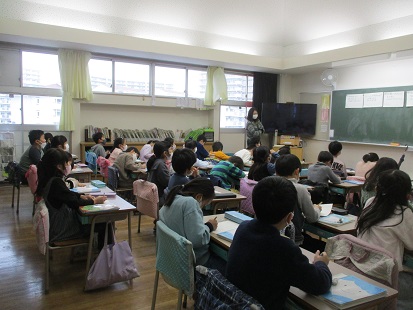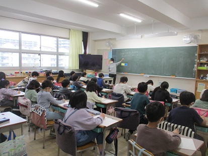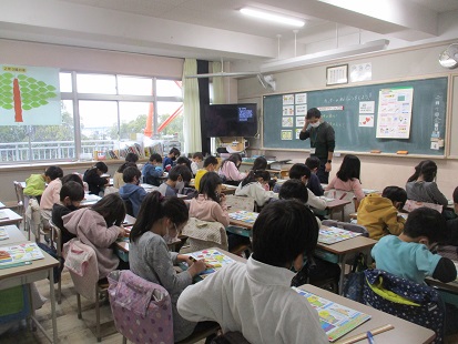 3校時の2年生3クラスの授業です。2クラスは算数。1クラスは図画工作科でカッターの使い方について学習していました。これから使うので、怪我をしないようにしっかり学習してほしいですね。