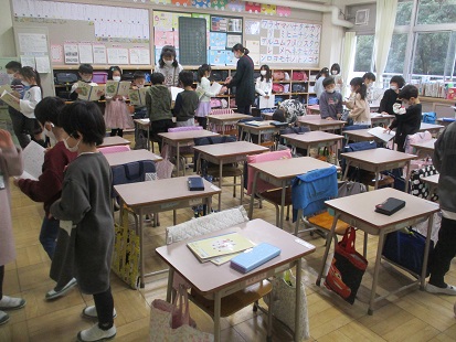 2月10日3校時の1年生・・・いろはかるた・質問の練習