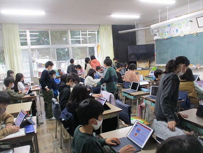 4校時の5年生3クラスの授業の様子です。ウインタースクールの経験がいかせているかな?