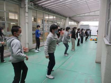 今日は校庭遊びができません。中庭、体育館と3つの学年が6年生を送る会に向けての練習でした。