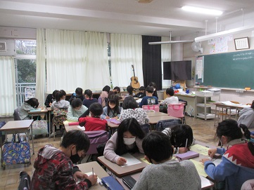 1校時の3年生3クラスの授業の様子です。マスクをしているからこそグループで対話したりできます。