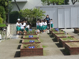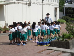 身体測定と同時に外に出て、1年生の確認をし観察をしていました。今日は暖かくpだやかな日なので、外に出ても最高です。