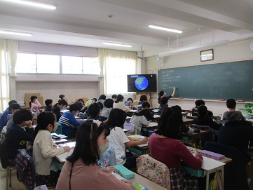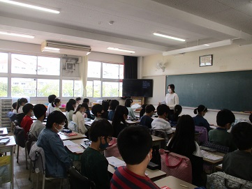 1校時の5年生3クラスの授業の様子です。社会科の授業は、教科担任制で担任の先生以外の5年生の担任の先生による授業です。