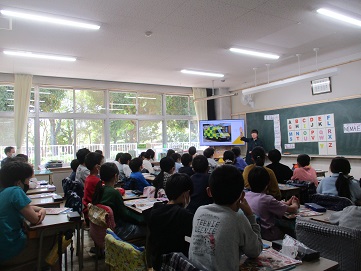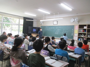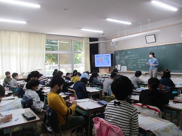 4校時5年生3クラスの授業の様子です。算数、社会、外国語科の授業です。