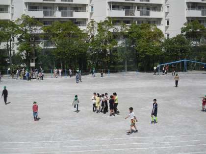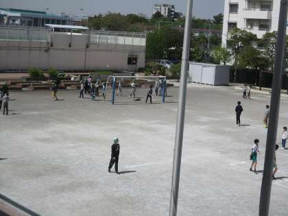 今日の昼休み校庭は6年生と3年生です。