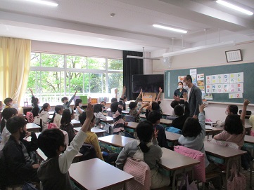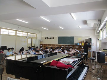 5校時の3年生3クラスの授業の様子です。音楽家の授業は初めての先生の前で少し均等気味でした。外国語活動では、活発に授業に参加していました。