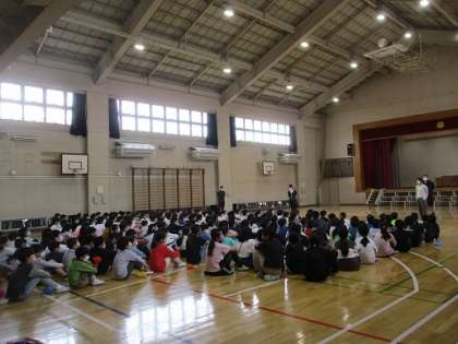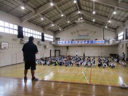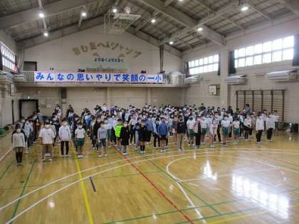 3校時5年生は、体育館で1年生を迎える会の練習です。