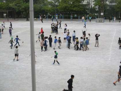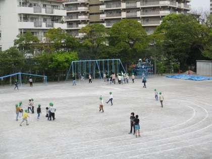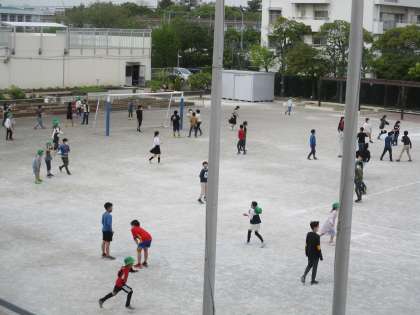 今日は3学年がそろいました。気候も良く、みんな元気に体を動かしていました。