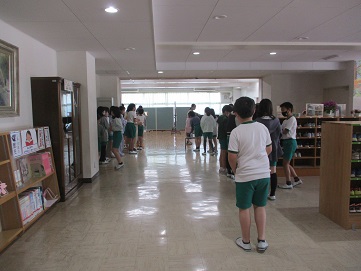 6年生は視力検査です。3年生は理科の観察です。今日は春らしい陽気でとても気持ちいいですね。5年生は社会科の授業です。