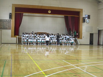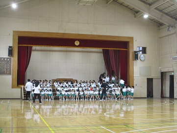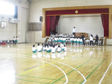 1校時の1年生は、体育館で1年生を迎える会の隊形の確認です。