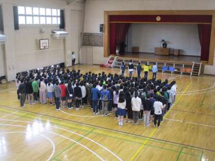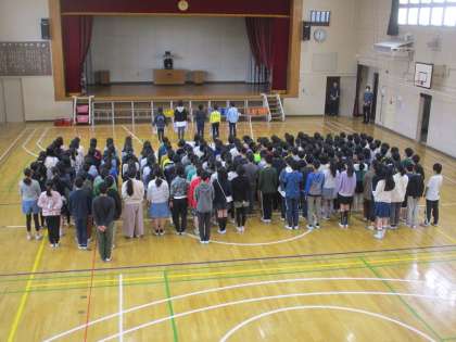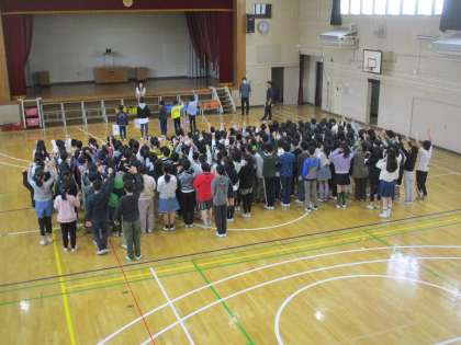 4校時の6年生は、学年で1年生を迎える会のリハーサルです。忙しい中、最上級生として頑張っています。