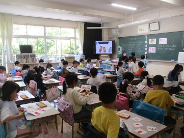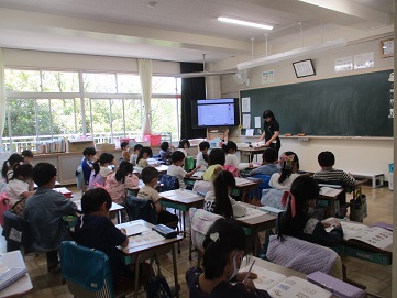 4校時の1年生の授業の様子です。今日の外はこの時期としては暑いので気を付けます。