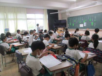 1校時の4年生3クラスの1校時の始まりの様子です。