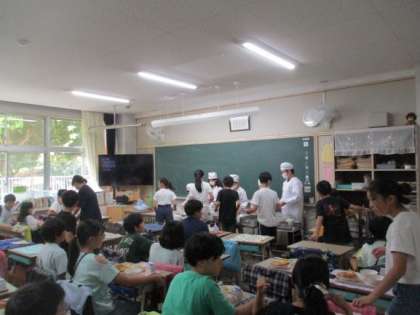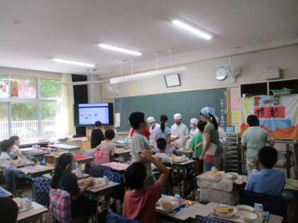 今日の各クラスの給食準備です。さて、何年生でしょう。