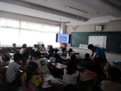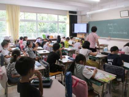 3校時の3年生3クラスの授業の様子です。上から理科の観察、今日は少し気温が下がりました。蒸し蒸しもしません。真ん中は外国語活動、最後は国語科の漢字です。