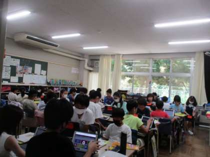 写真の6年生の3クラスは教科担任の先生による授業です。上から理科、外国語科、社会科です。