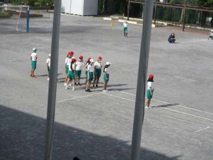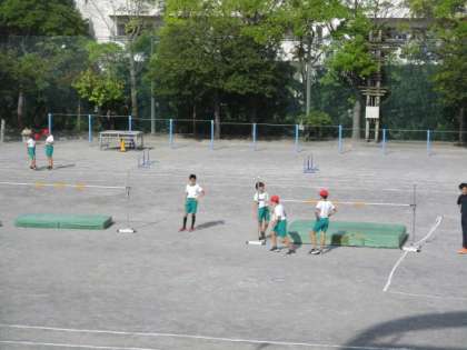 5校時の6年生の体育の授業です。体育大会に向けての練習です。