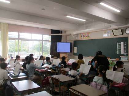 6校時の4年生2クラスの授業の様子です。