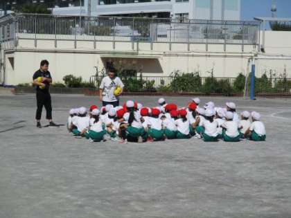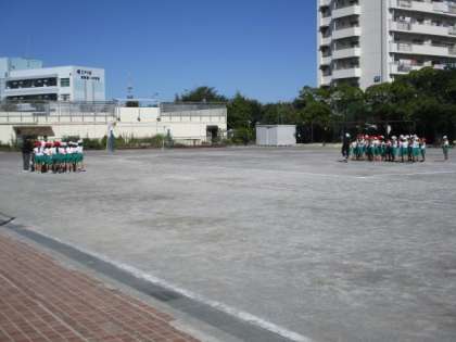 2校時の1年生3クラスの授業の様子です。外体育は風が強いですが、気候的には問題なく気持ちよくできます。