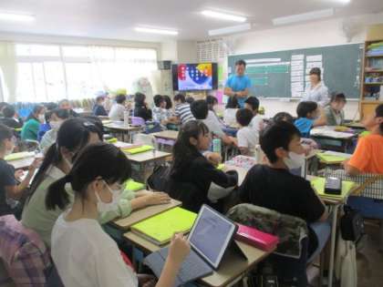 4校時6年生3クラスの授業の様子です。社会科、外国語科、国語科の授業です。