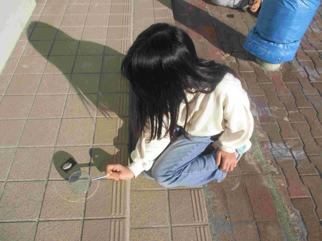 「太陽の光」の学習。虫メガネで太陽の光を集める実験!