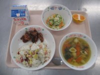 こどもの日にちなみ、ちまきを取り入れた献立です。ちまきは給食室の手作りです。