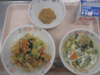 新年の行事のひとつ「七草がゆ」にちなんだメニューです。ししゃもはカミカミメニューなので、30回は噛んで食べましょう。