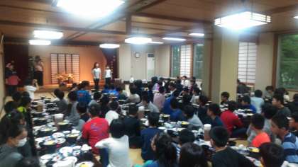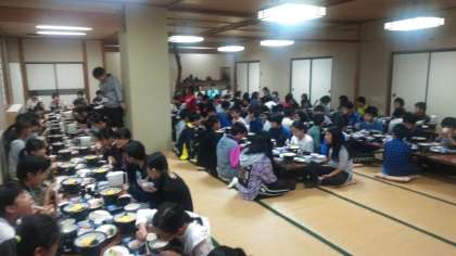 たくましく朝ごはんを食べています。みんな元気に二日目を迎えてます。