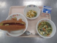 【わかめごはん・鶏のから揚げ・さけのつけ焼き・小松菜のおかか和え・舟形きゅうり】...