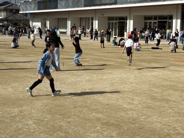 春江小では、中休みになわとびビークとして、短縄でのいろいろな技にチャレンジしています。