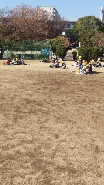 船堀スポーツ公園で昼食です。とても楽しく食べています。友達にやさしく声かけている様子が素敵です。