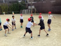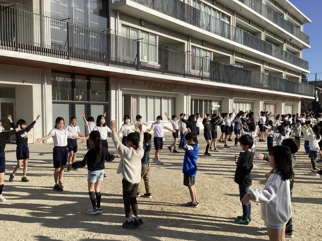 5〜6年生が見本を示してくれながら、全校のみんなで楽しく踊ることができました。