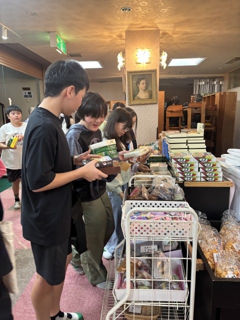 木のバッチ作り、米袋作り、お土産購入をクラスごとに楽しみました。制作活動は、講師の先生に教えていただきながら真剣に取り組んでいました。そしてお土産は、渡す人のことを考えながら楽しそうに選んでいました。