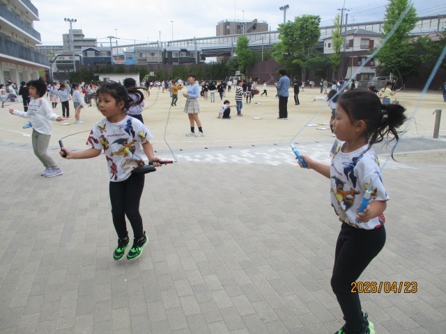 今週はなわ跳びウィークです。江戸川区の体力向上の取組ですが、春江小学校では毎年取り組んでいます。中休みになると軽快な音楽が流れ、たくさんの子供たちがなわ跳びカードをもって校庭にでます。それぞれ自分のめあてに向かって跳びます。あや跳びやこうさ跳びなど難しい技に挑戦している低学年児童もいました。
