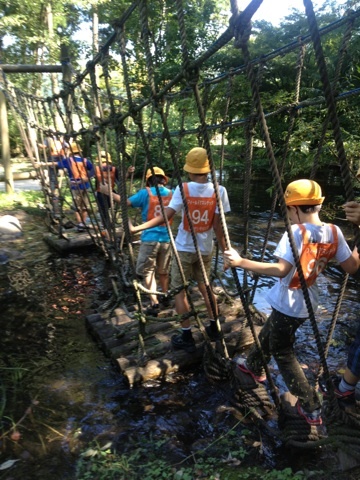 昼食を食べいよいよアスレチック開始です。ゆらゆらぐらぐら、池を渡ったりロープのトンネルをくぐったり楽しそうに活動しています。