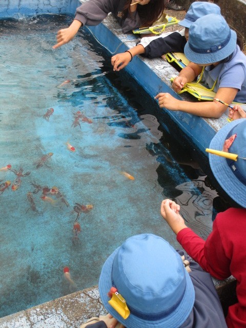 普段は出会うことのない形や色の金魚に子供たちは興味津々でした!