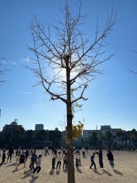 今朝は朝会の時間を使ってリズムなわとびに全校で取り組みました。