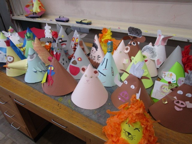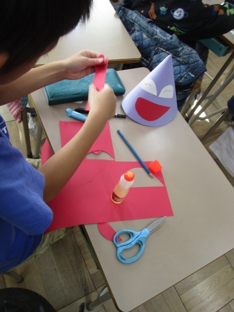 図画工作の活動でも、学芸会を盛り上げるために飾りづくりに取り組みました。