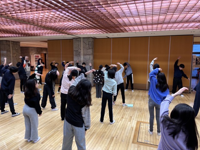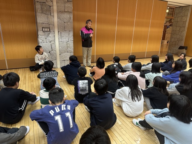 みんなで朝の会を行い、今日のスキー教室への期待を高めました。