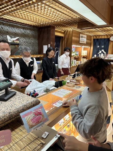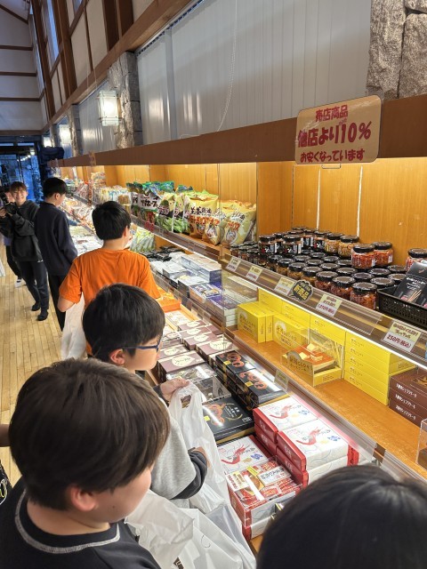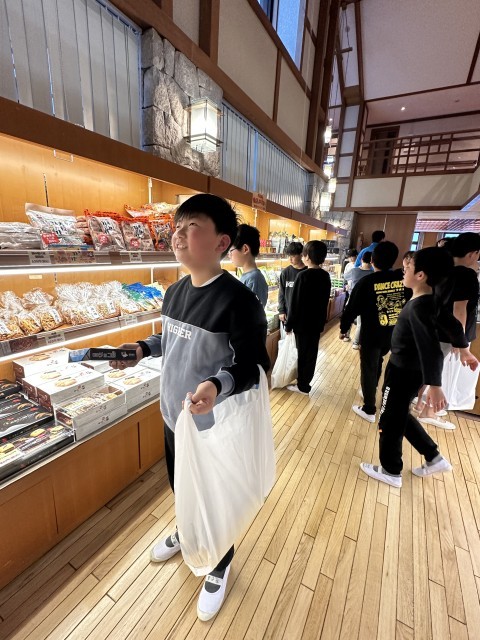 入浴の後は、みんなお待ちかねのお土産購入タイムです。予算内に収まるように暗算しながら、品物を選び、算数の学習が生きる場面となりました。さて、どんなお土産を買って帰るかは、お楽しみに♪