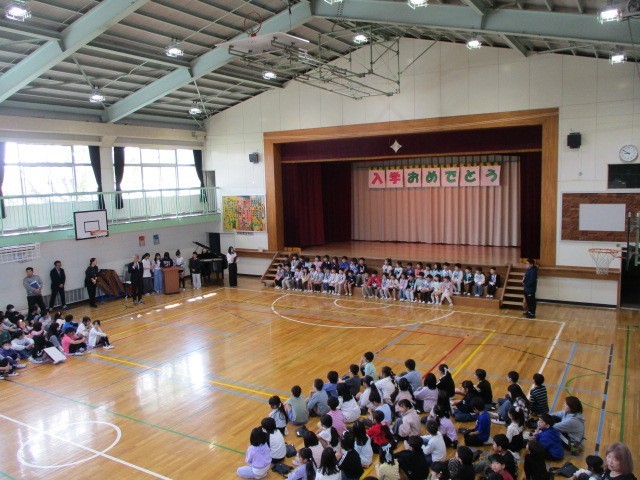 在校生それぞれからプレゼントや、歌、出し物などを行い、1年生の仲間入りをお祝いしました。
