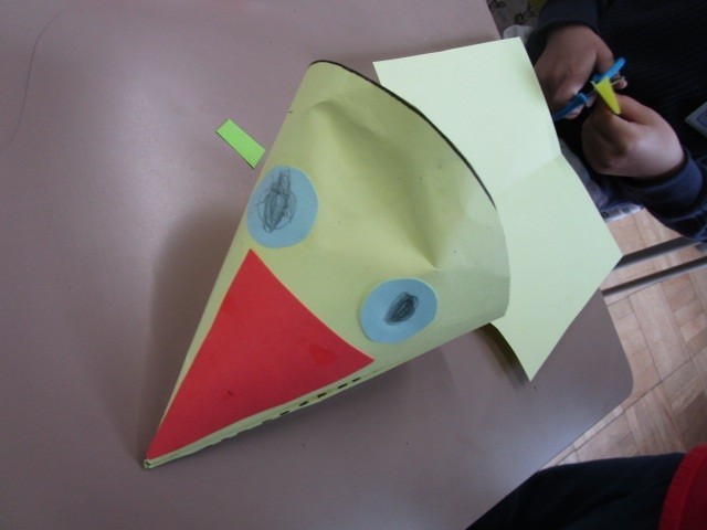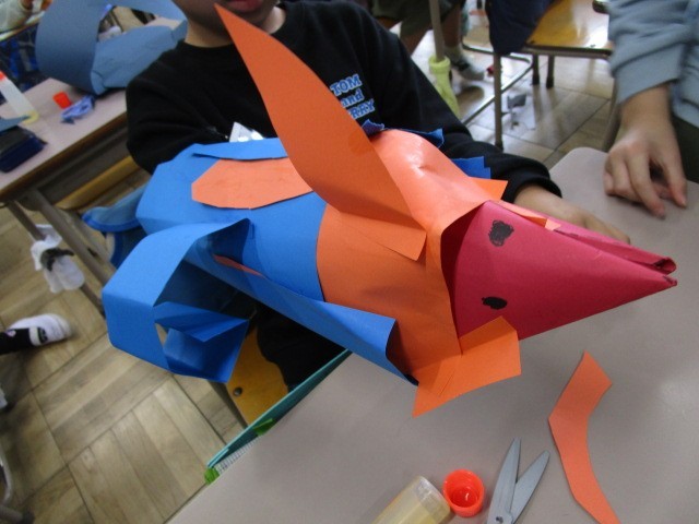 2年生は紙工作「あそぼうよパクパクさん2」に取り組んでいます。