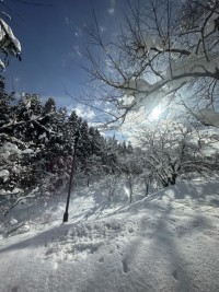 リフトの上から見た景色です。どのグループも、素敵なインストラクターさんたちがついています。皆さんが「新堀小の5年生はとてもよい子ですね。」と褒めてくださいました。