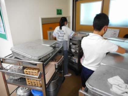今週は、「片付けグッド週間」です。お箸やスプーンの向きがそろっているか、牛乳パックがきちんと開かれているかなどを、給食委員がチェックしています。1人1人がきれいに片づけるよう、心がけたいですね。